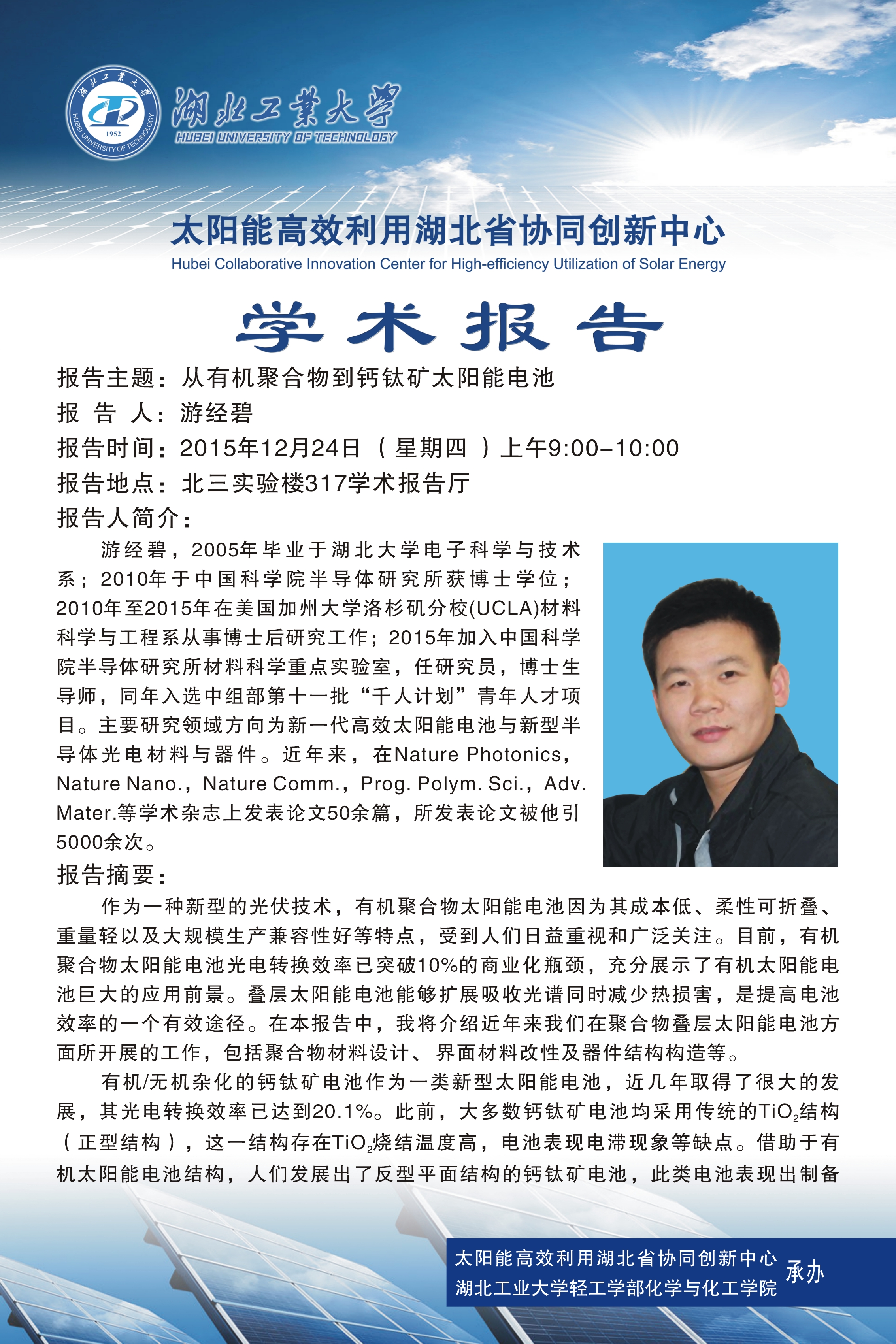 学术报告—从有机聚合物到钙钛矿太阳能电池