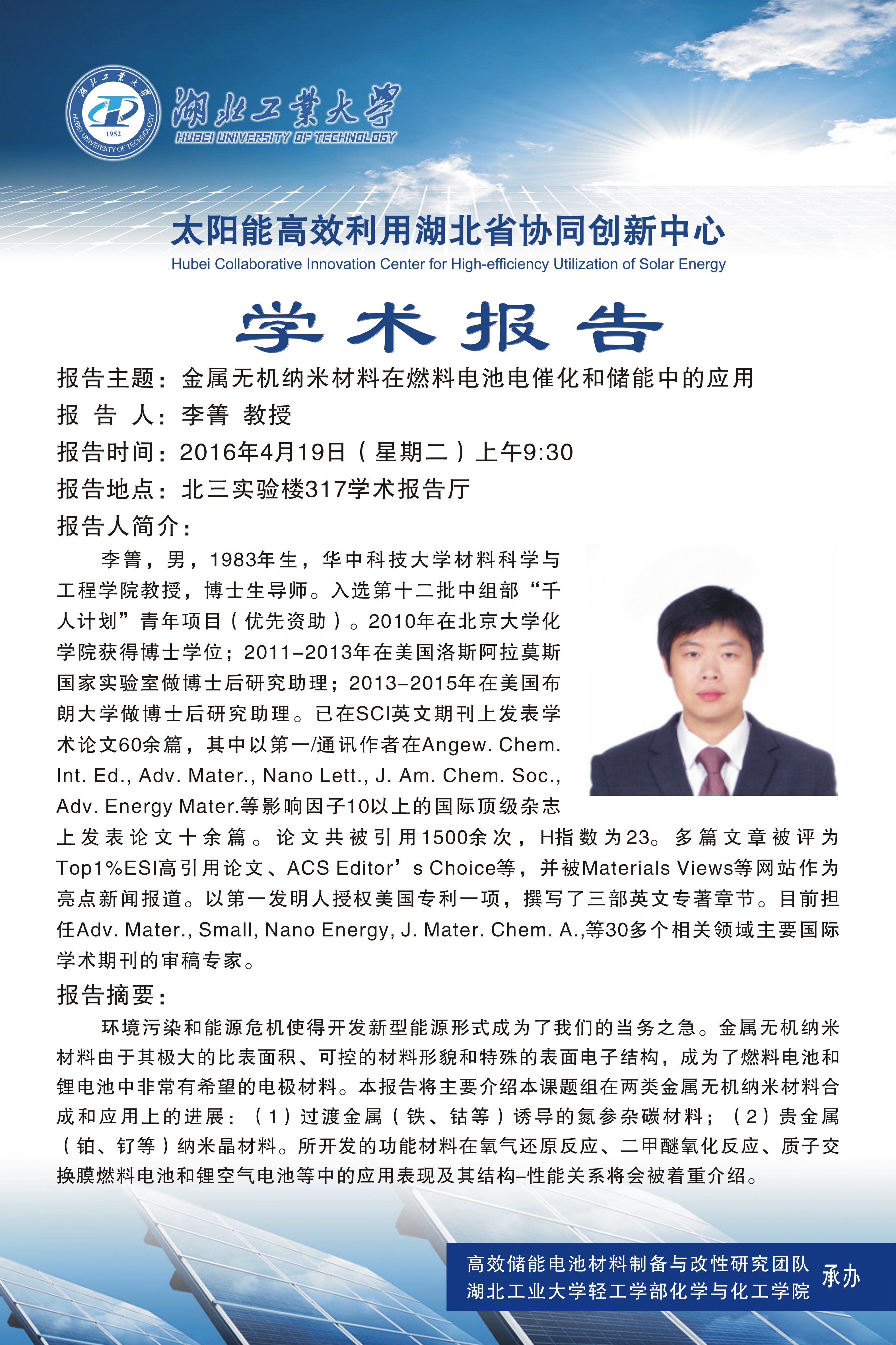 学术报告-金属无机纳米材料在燃料电池电催化和储能中的应用