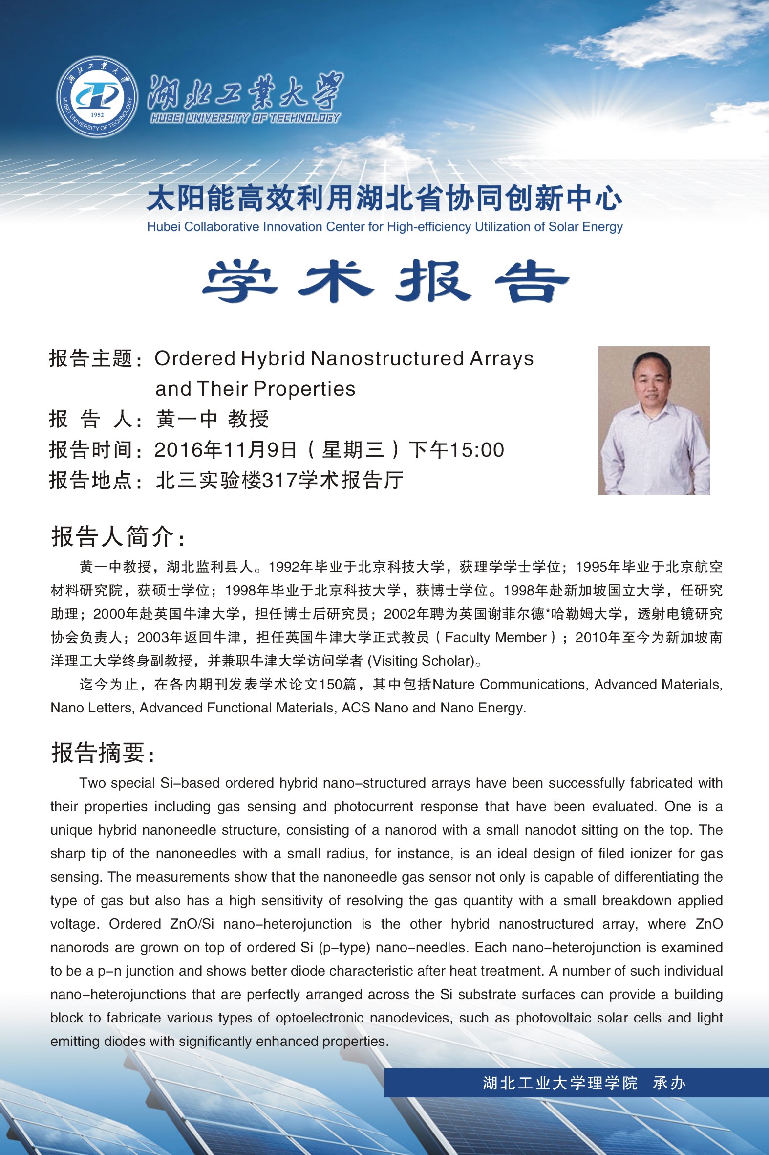 学术报告—Ordered Hybrid Nanostructured Arrays and Their Properties