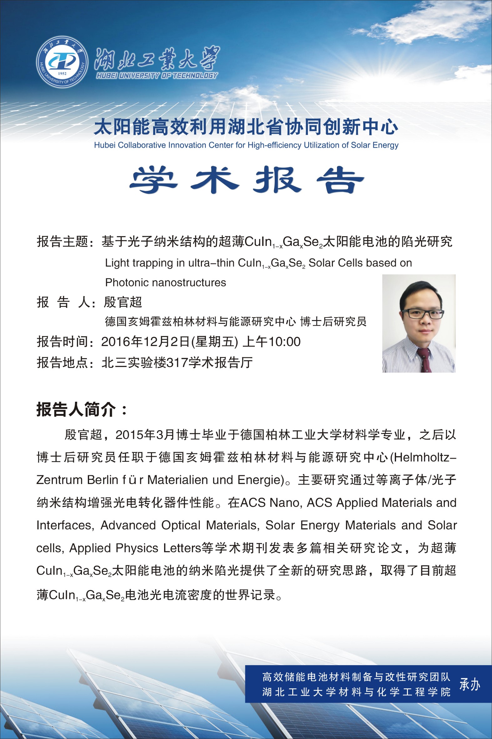 学术报告-基于光子纳米结构的超薄CuIn1-xGaxSe2太阳能电池的陷光研究